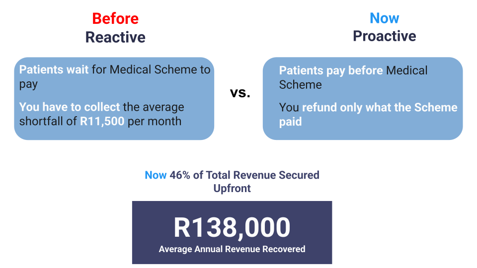 This proactive strategy protected our Doctor’s practices from an R138,000 average annual revenue gap.